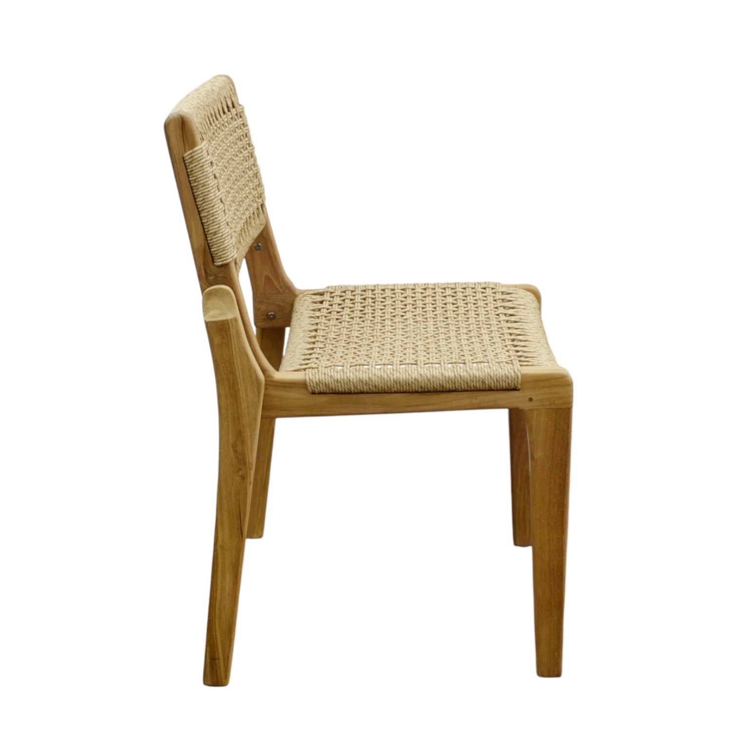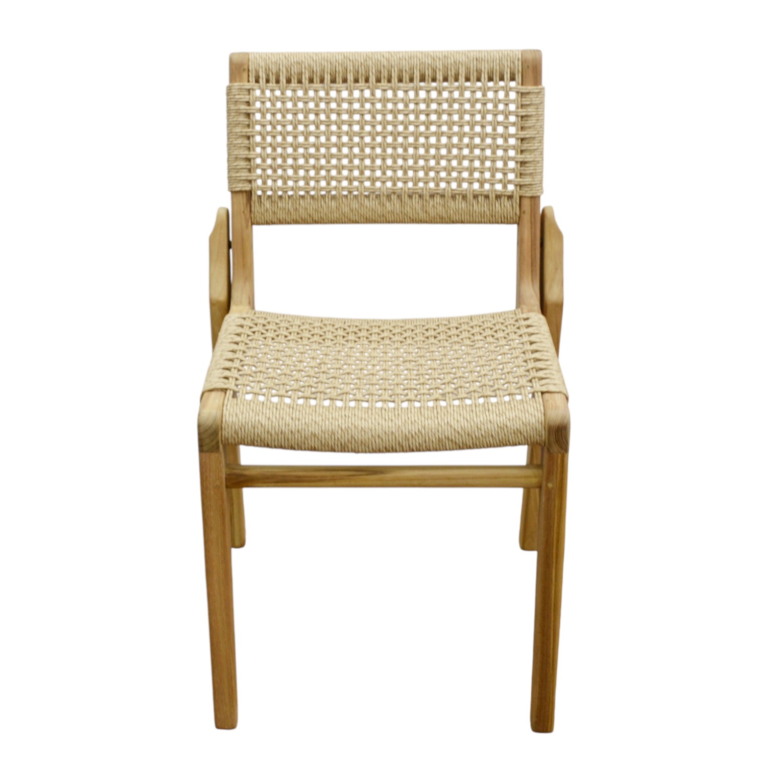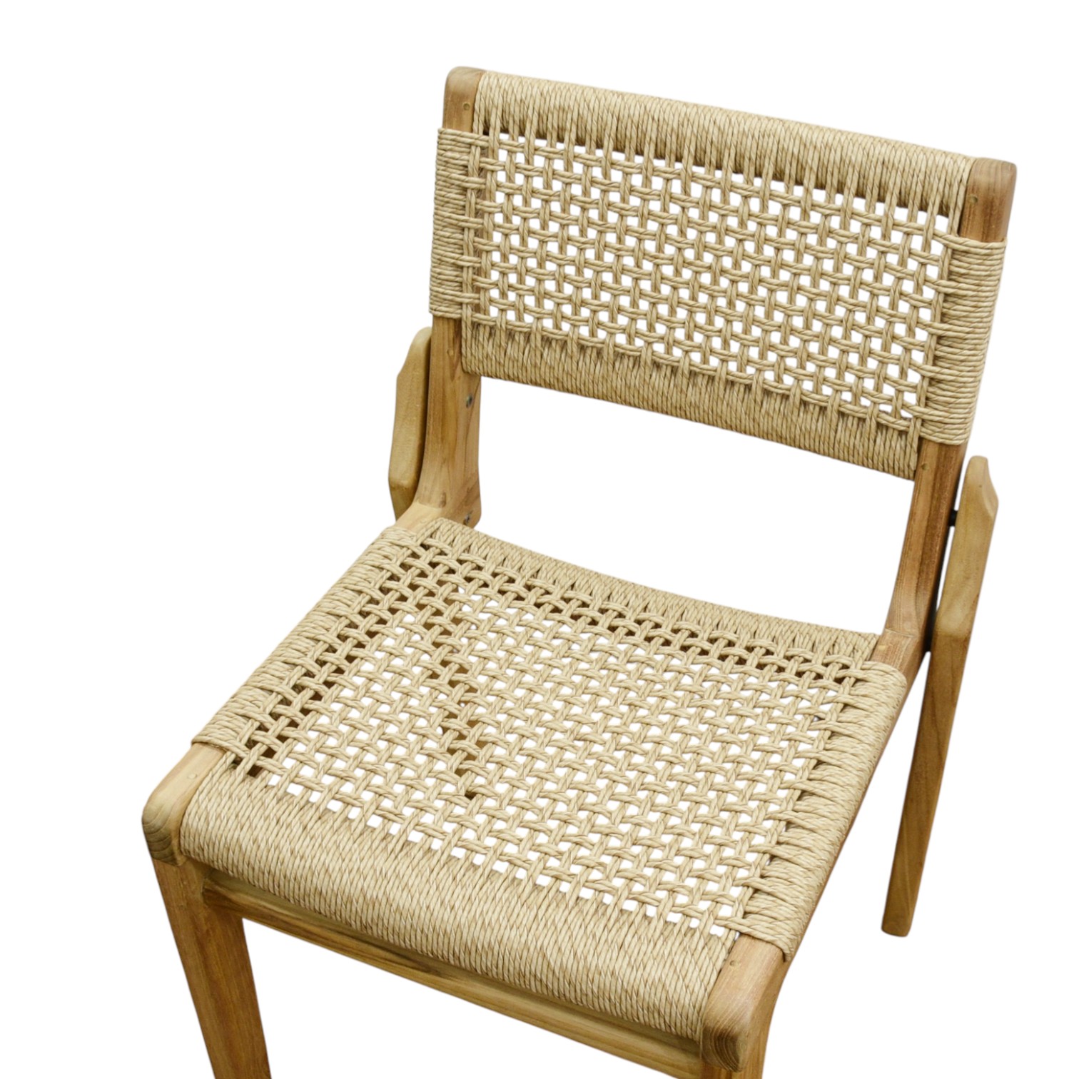 Endonezya menşeili bu sandalye, dayanıklı teak iskeleti ve konfor sağlayan sentetik oturumu ile hem şık hem de uzun ömürlü bir kullanım sunar. Doğal görünümü sayesinde yaşam alanlarına sıcak ve modern bir dokunuş katar.